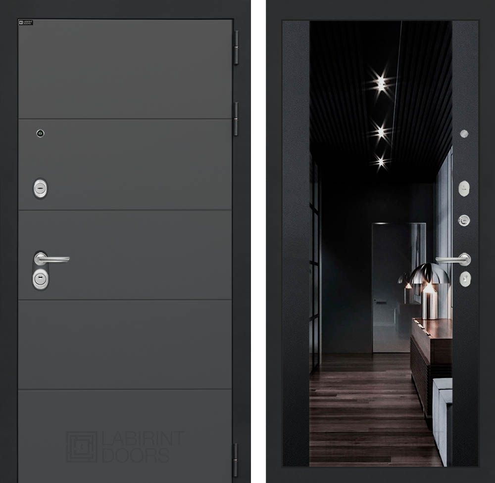 Дверь Лабиринт ART графит - Черный кварц Зеркало Максимум: надежность, современный стиль, утепленная конструкция