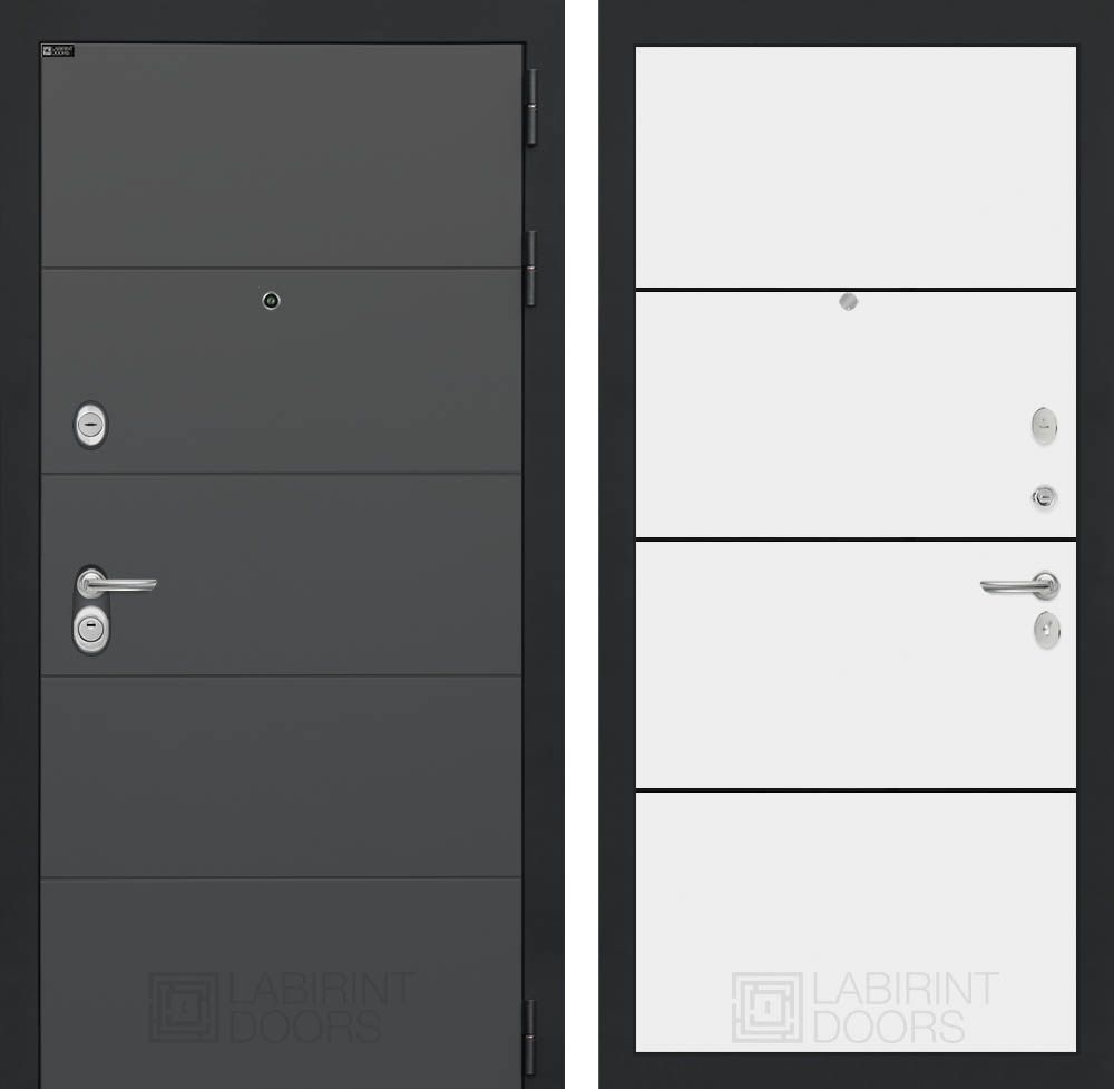 Входная дверь Лабиринт ART графит 25 - Белый софт, черный молдинг