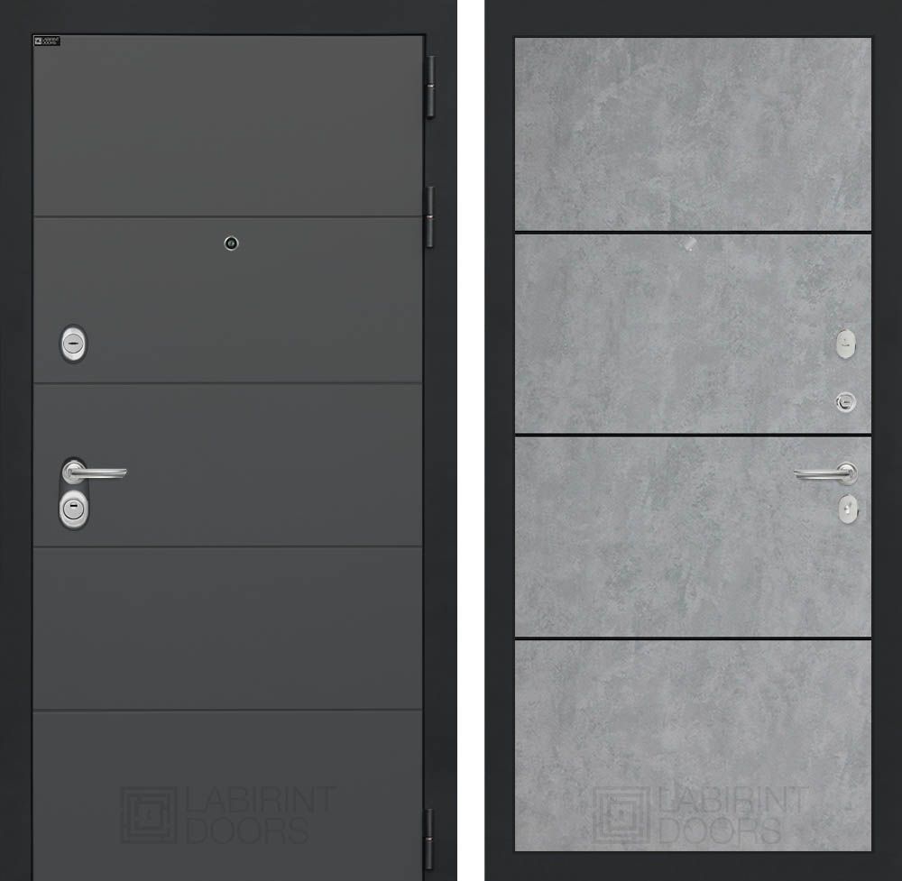 Входная дверь Лабиринт ART графит 25 - Бетон светлый, черный молдинг