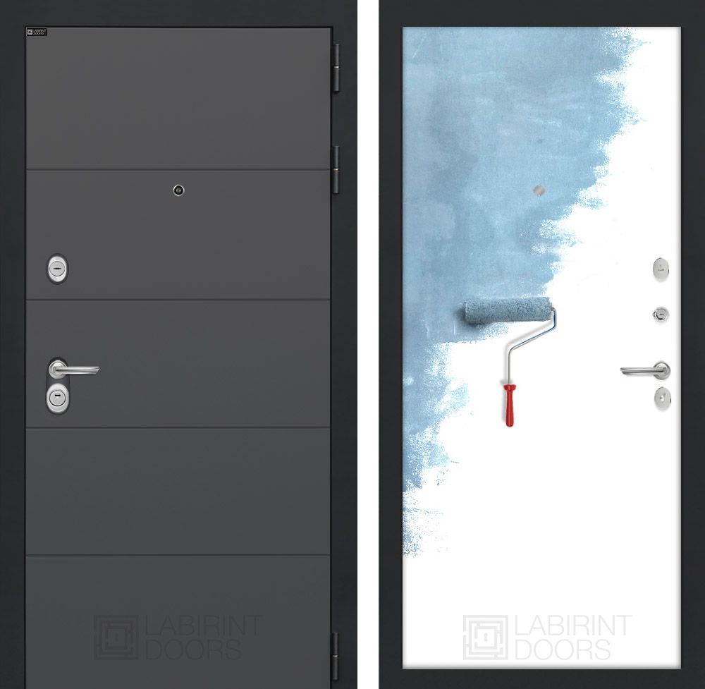 Входная дверь Лабиринт ART графит 28 - Грунт под покраску, цвет графит софт, МДФ панель, надежная защита и утепление