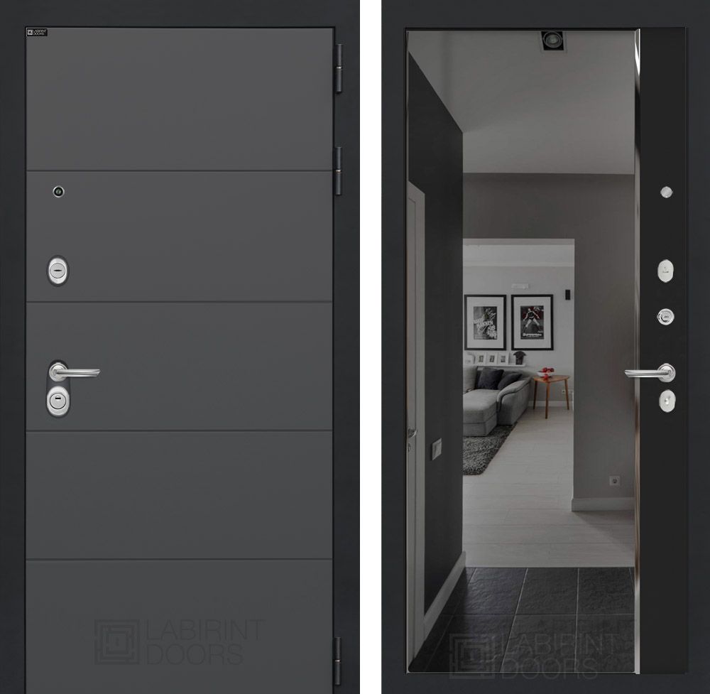 Входная дверь Лабиринт ART графит с зеркалом Панорама - современный стиль, безопасность и надежность