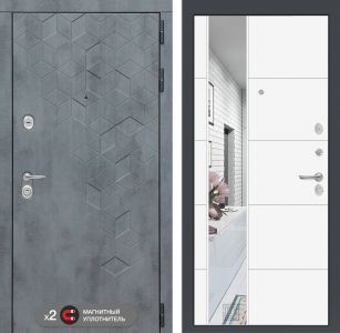 Входная дверь Лабиринт Бетон с зеркалом замок Mottura 19 - Белый софт