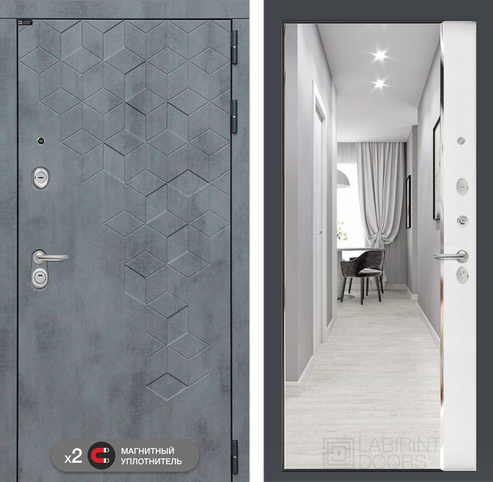 Входная дверь Лабиринт Бетон замок Mottura с зеркалом Панорама Белый софт