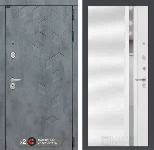 Входная дверь Лабиринт Бетон 31 - Белый софт, зеркальная вставка, надежная защита, утепление для комфортного проживания