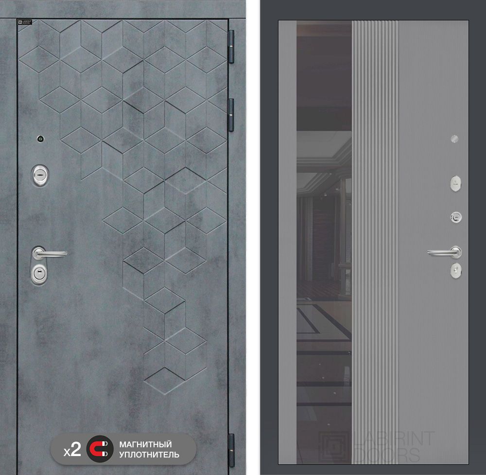 Входная дверь Лабиринт Бетон 32 - Зеркало тонированное Серый софт рельеф