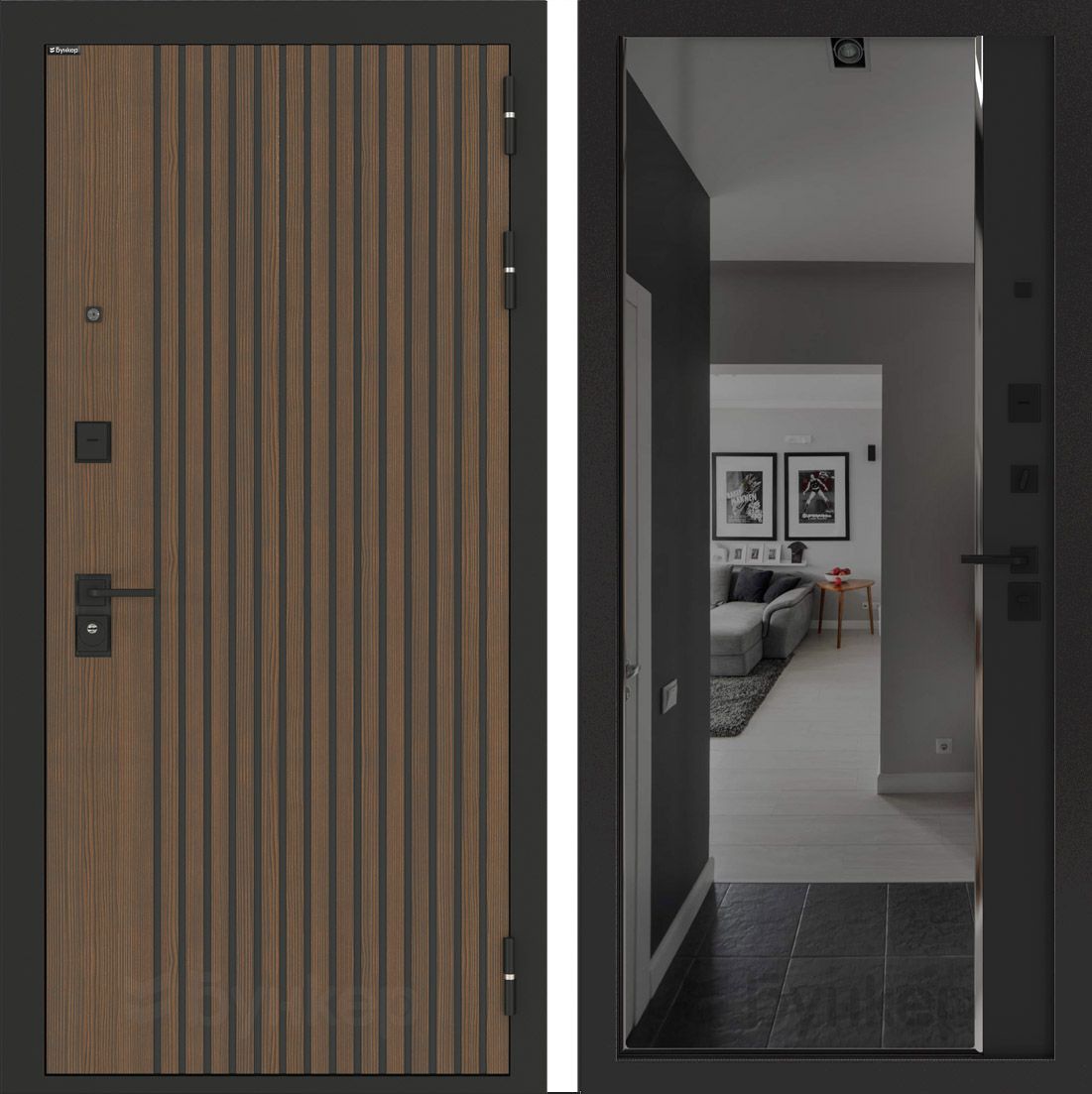 Входная дверь Лабиринт STORM 31 в черном кварце с зеркальной вставкой и тонировкой — идеальное решение для вашего интерьера. Устойчивое к внешним воздействиям изделие изготовлено из стали толщиной 1,8 мм с двумя ребрами жесткости и утеплением из базальтовой плиты. Дверь оснащена надежными замками Kale, обеспечивающими высокий уровень безопасности, и имеет современную отделку из MDF с декоративной панелью в цвете "Дуб кантри темный". Доставка по Москве и всем регионам РФ. Гарантия на структуру 1 год, на замки — 3 года.