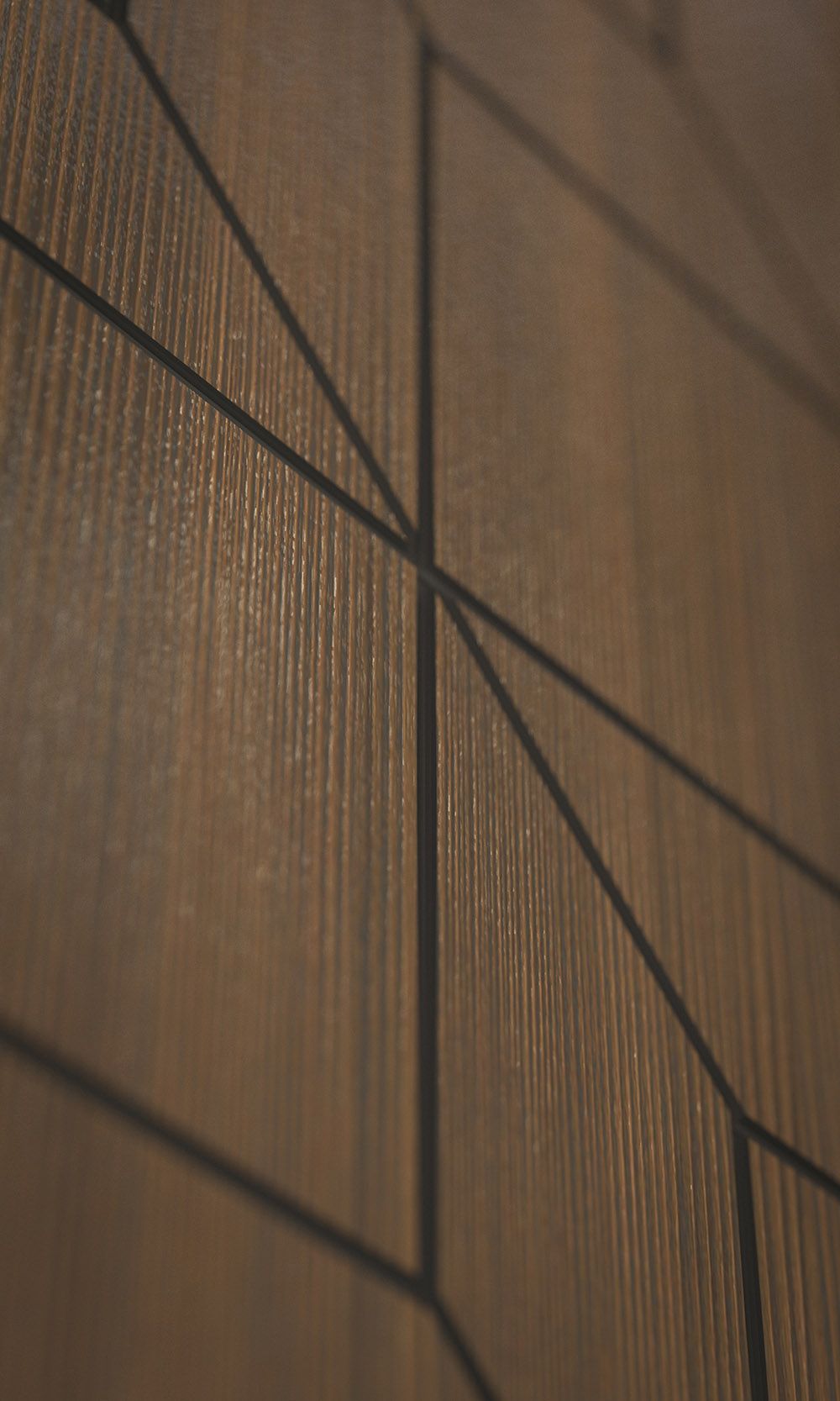 Отделка снаружи:Фрезерованная МДФ 10 мм цвет Ларче орех с черной патиной