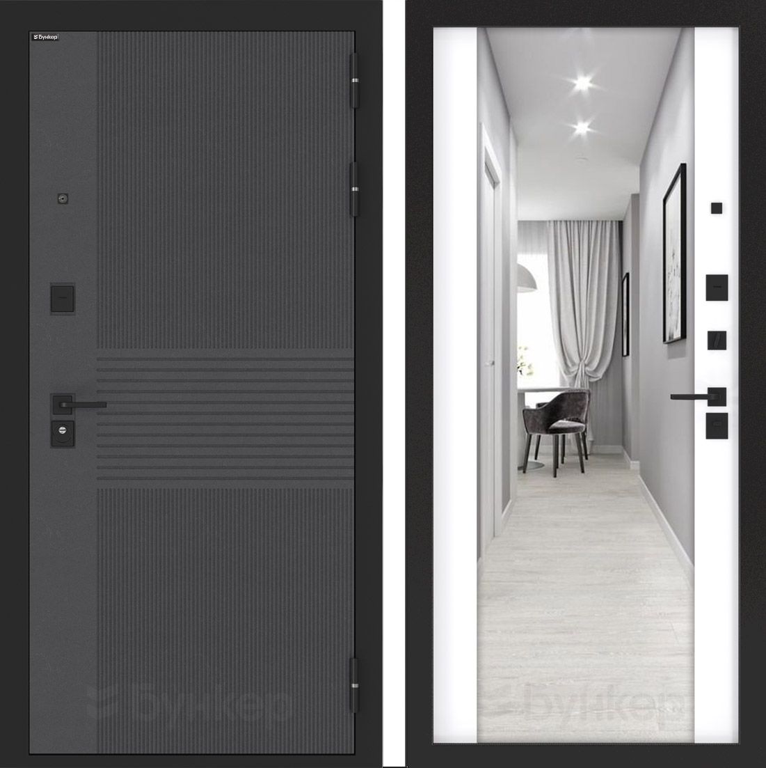 Входная дверь Лабиринт STORM 31 в черном кварце с зеркальной вставкой и тонировкой — идеальное решение для вашего интерьера. Устойчивое к внешним воздействиям изделие изготовлено из стали толщиной 1,8 мм с двумя ребрами жесткости и утеплением из базальтовой плиты. Дверь оснащена надежными замками Kale, обеспечивающими высокий уровень безопасности, и имеет современную отделку из MDF с декоративной панелью в цвете "Дуб кантри темный". Доставка по Москве и всем регионам РФ. Гарантия на структуру 1 год, на замки — 3 года.