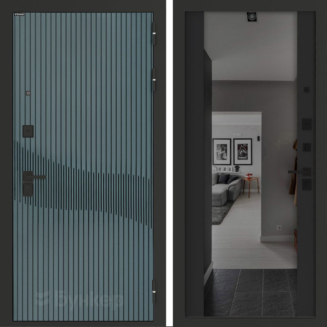 Входная дверь Бункер BN-13 с зеркалом (тонировка) ФЛЗ-1 Черный кварц