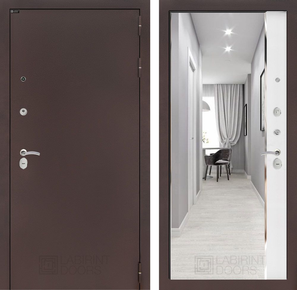 Входная дверь Лабиринт CLASSIC антик медный с зеркалом Панорама - Белый софт