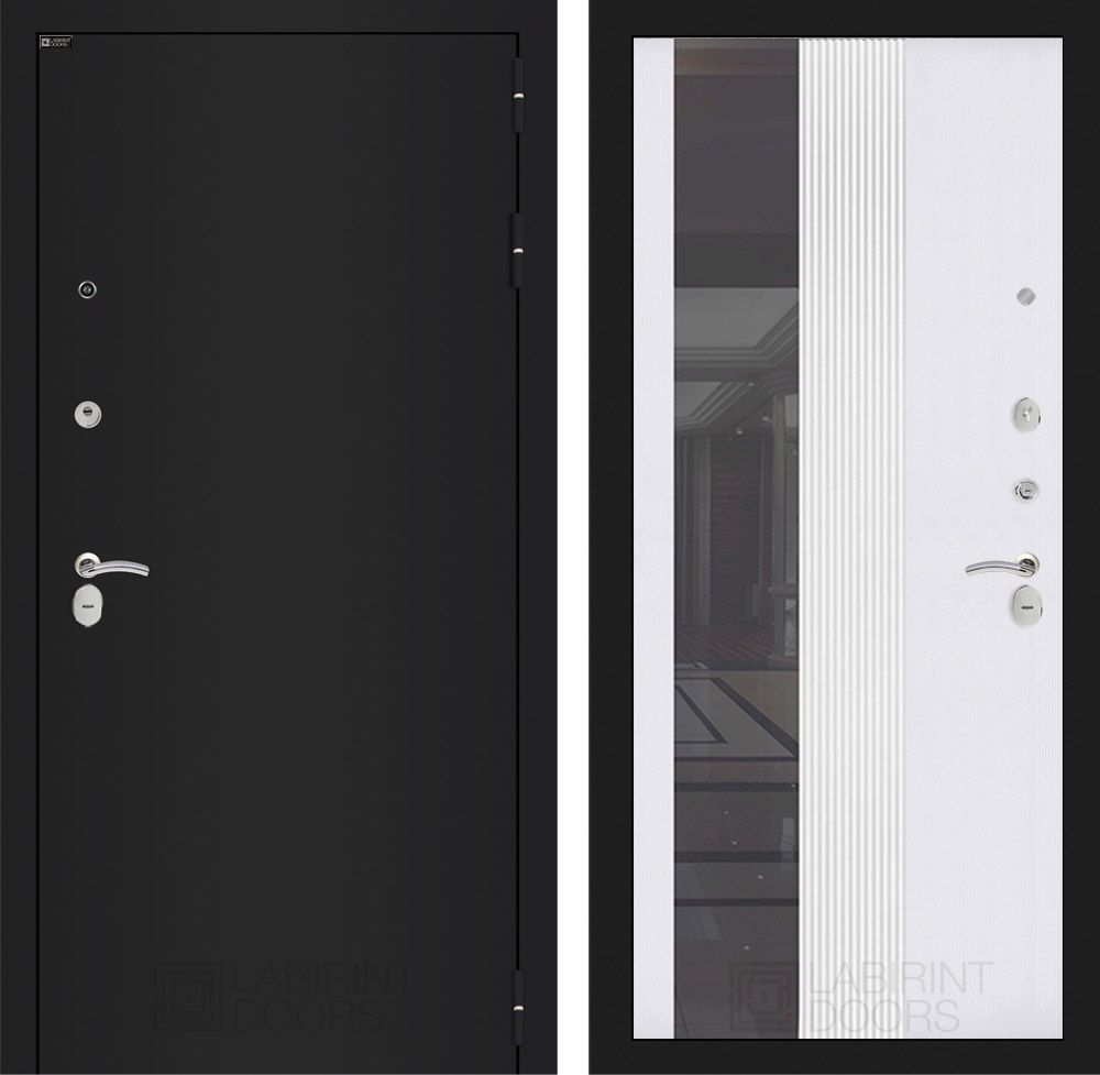 Входная дверь Лабиринт CLASSIC шагрень черная - 32 Зеркало тонированное Белый софт рельеф