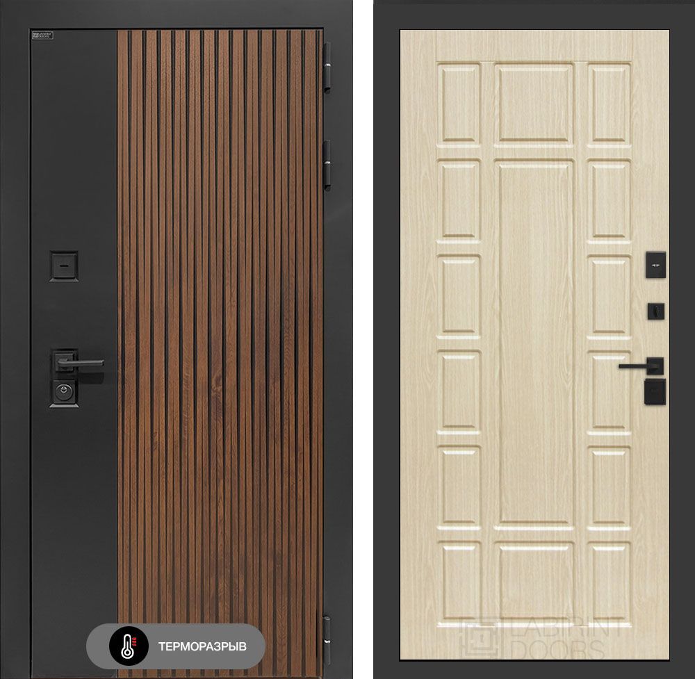Входная дверь с терморазрывом Лабиринт Айслаб 12 – Беленый дуб . Наличник имеет увеличенные габариты, составляя 100 мм, что обеспечивает повышенную устойчивость к механическим воздействиям. Металлические компоненты изделия подвергаются антикоррозийной обработке методом фосфатирования, что значительно продлевает срок службы изделия в условиях повышенной влажности и агрессивной среды. Финишное покрытие, выполненное в технологии "Муар" черного цвета, придает изделию эстетически привлекательный внешний вид и дополнительную защиту от внешних факторов.