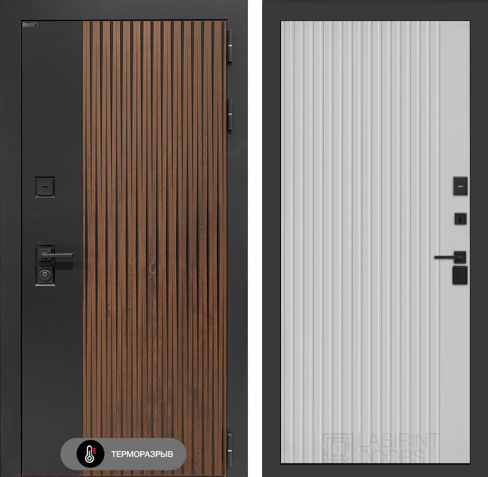 Входная дверь с терморазрывом Лабиринт Айслаб 29 – Белый рельеф софт . Наличник имеет увеличенные габариты, составляя 100 мм, что обеспечивает повышенную устойчивость к механическим воздействиям. Металлические компоненты изделия подвергаются антикоррозийной обработке методом фосфатирования, что значительно продлевает срок службы изделия в условиях повышенной влажности и агрессивной среды. Финишное покрытие, выполненное в технологии "Муар" черного цвета, придает изделию эстетически привлекательный внешний вид и дополнительную защиту от внешних факторов.