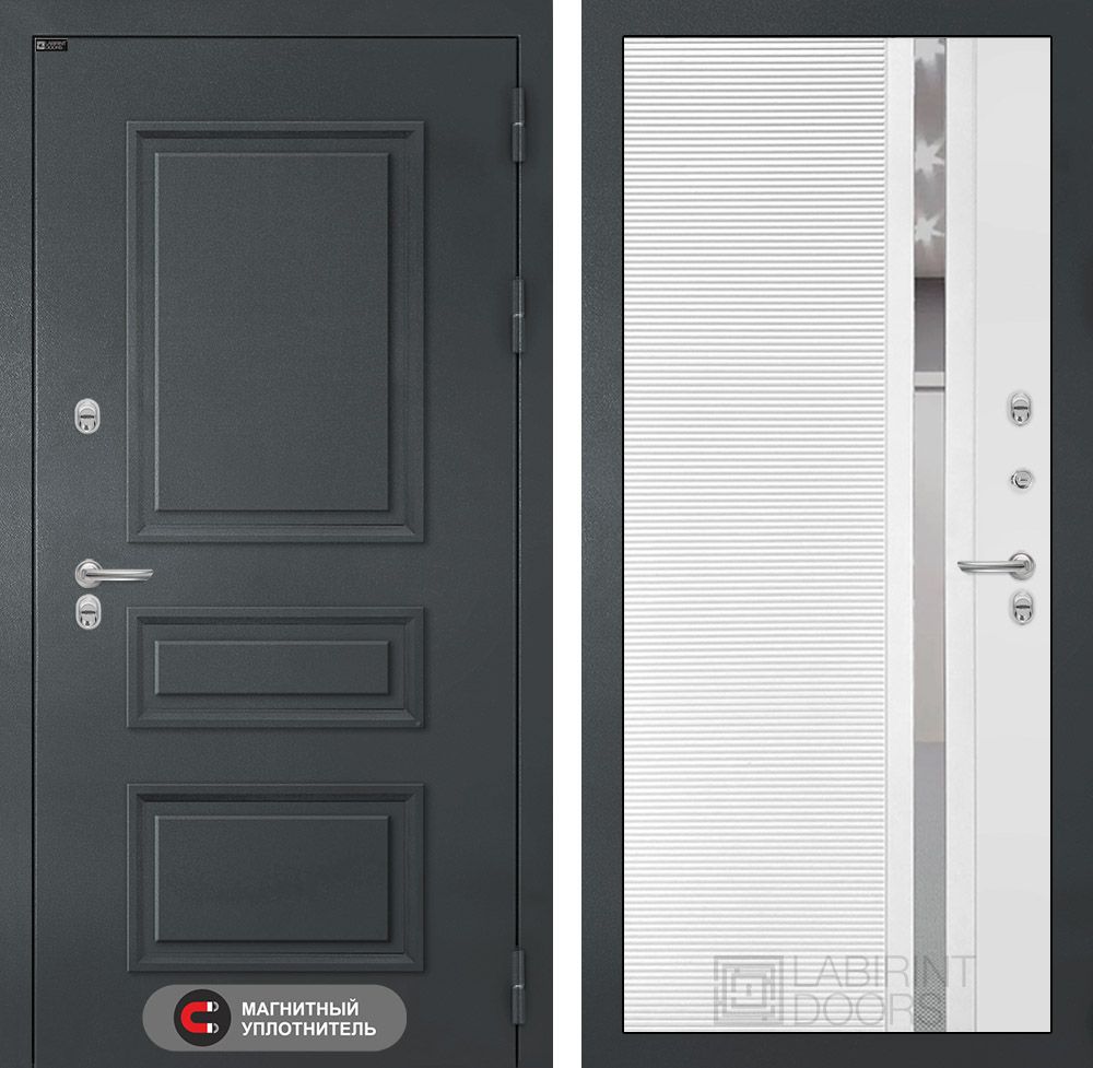 Входная дверь Лабиринт Атлантик - 31 Белый софт (зеркальная вставка с тонировкой)