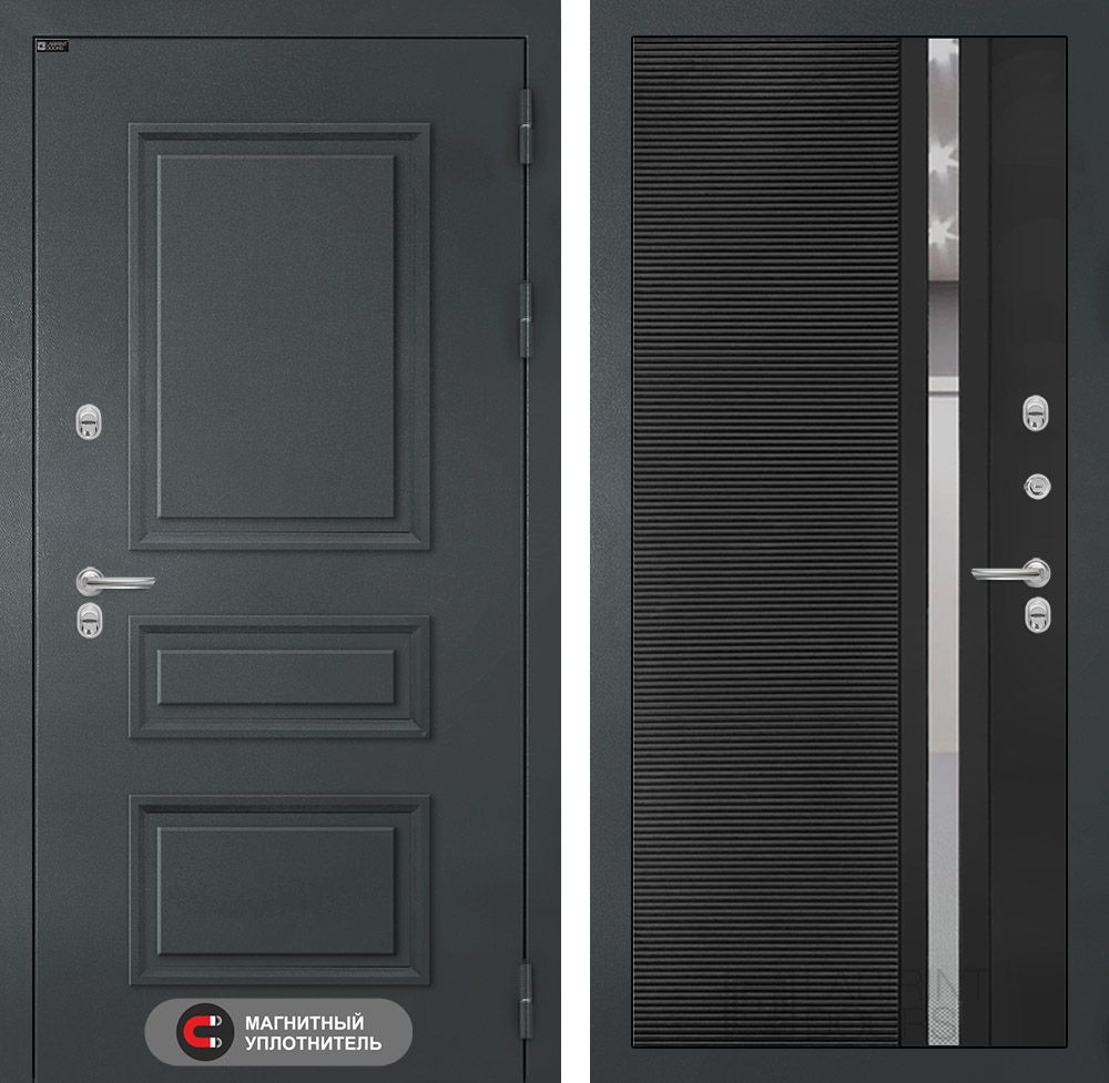 Входная дверь Лабиринт Атлантик - 31 Черный кварц (зеркальная вставка с тонировкой)