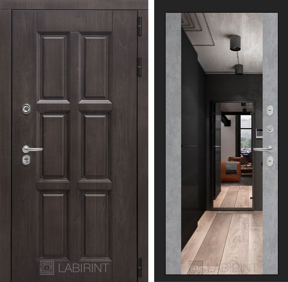 Входная дверь Лабиринт Лондон с зеркалом Максимум - Бетон светлый, артикул 123456: стальная, терморазрыв, высоким уровнем безопасности