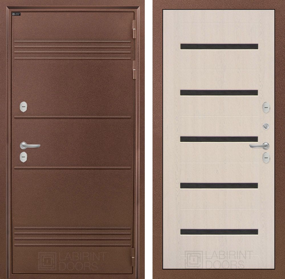 Входная дверь Лабиринт ТЕРМО ЛАЙТ 01 - Беленый дуб, стекло черное