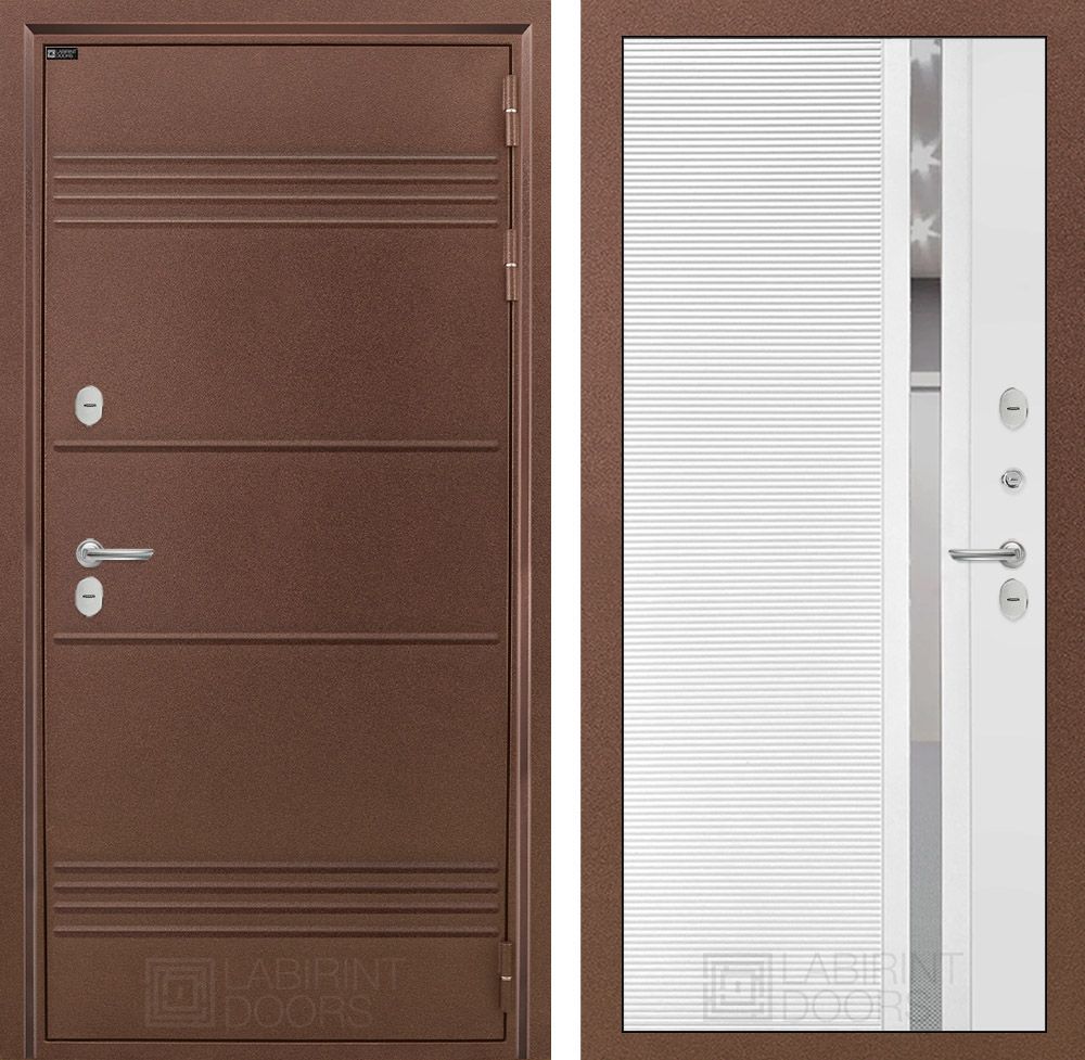 Входная дверь Лабиринт ТЕРМО ЛАЙТ 31 - Белый софт (зеркальная вставка с тонировкой)