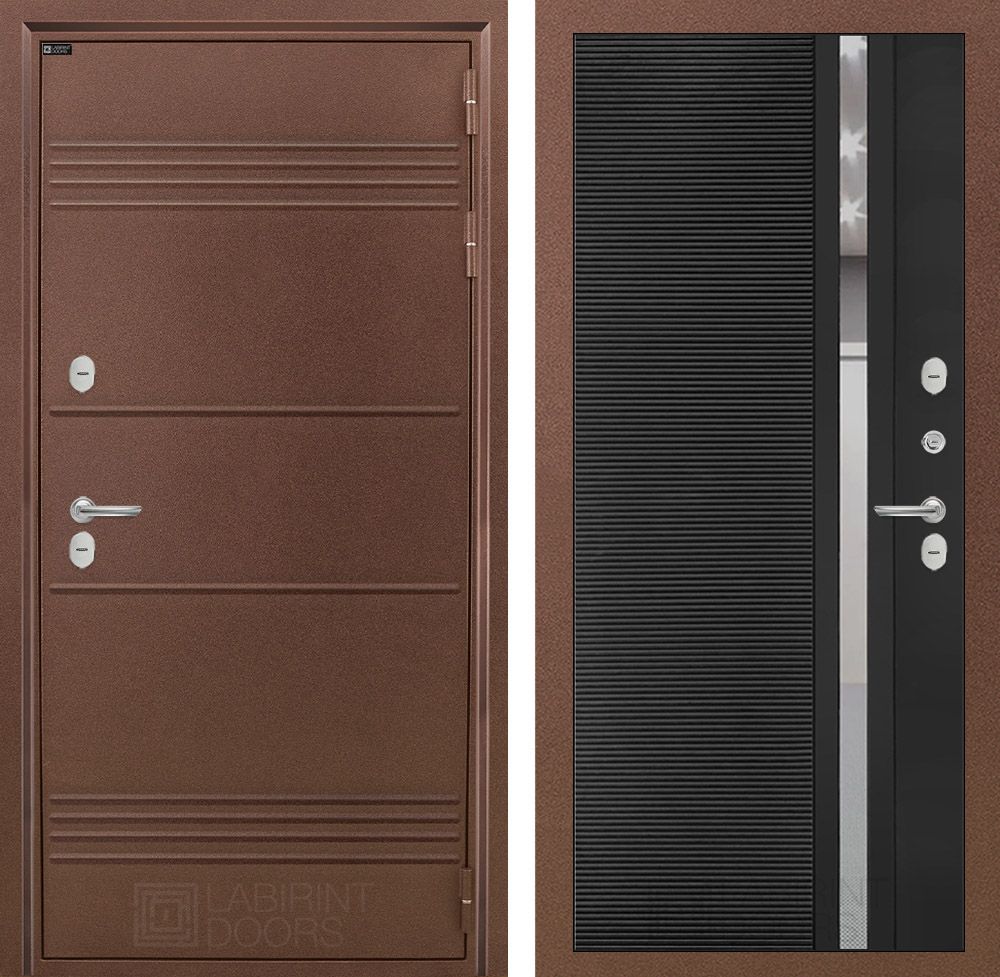 Входная дверь Лабиринт ТЕРМО ЛАЙТ 31 - Черный кварц (зеркальная вставка с тонировкой)