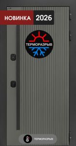 Входная дверь с терморазрывом Лабиринт Термолаб 1 тепло 13 – Грей софт. Ручка-скоба нажимная с клавишей (снаружи), увеличенный металлический наличник 100 мм, антикоррозийная обработка металла методом фосфатирования, покраска «Муар» черный.