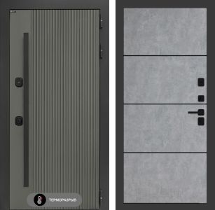 Входная дверь Лабиринт Термолаб 1 тепло 25 – Бетон светлый, черный молдинг