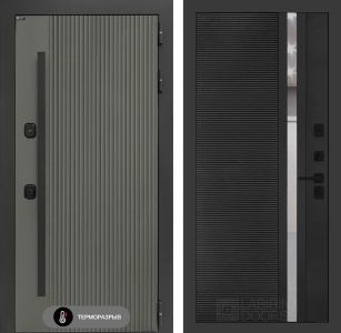 Входная дверь Лабиринт Термолаб 1 тепло 31 – Черный кварц, зеркальная вставка с тонировкой