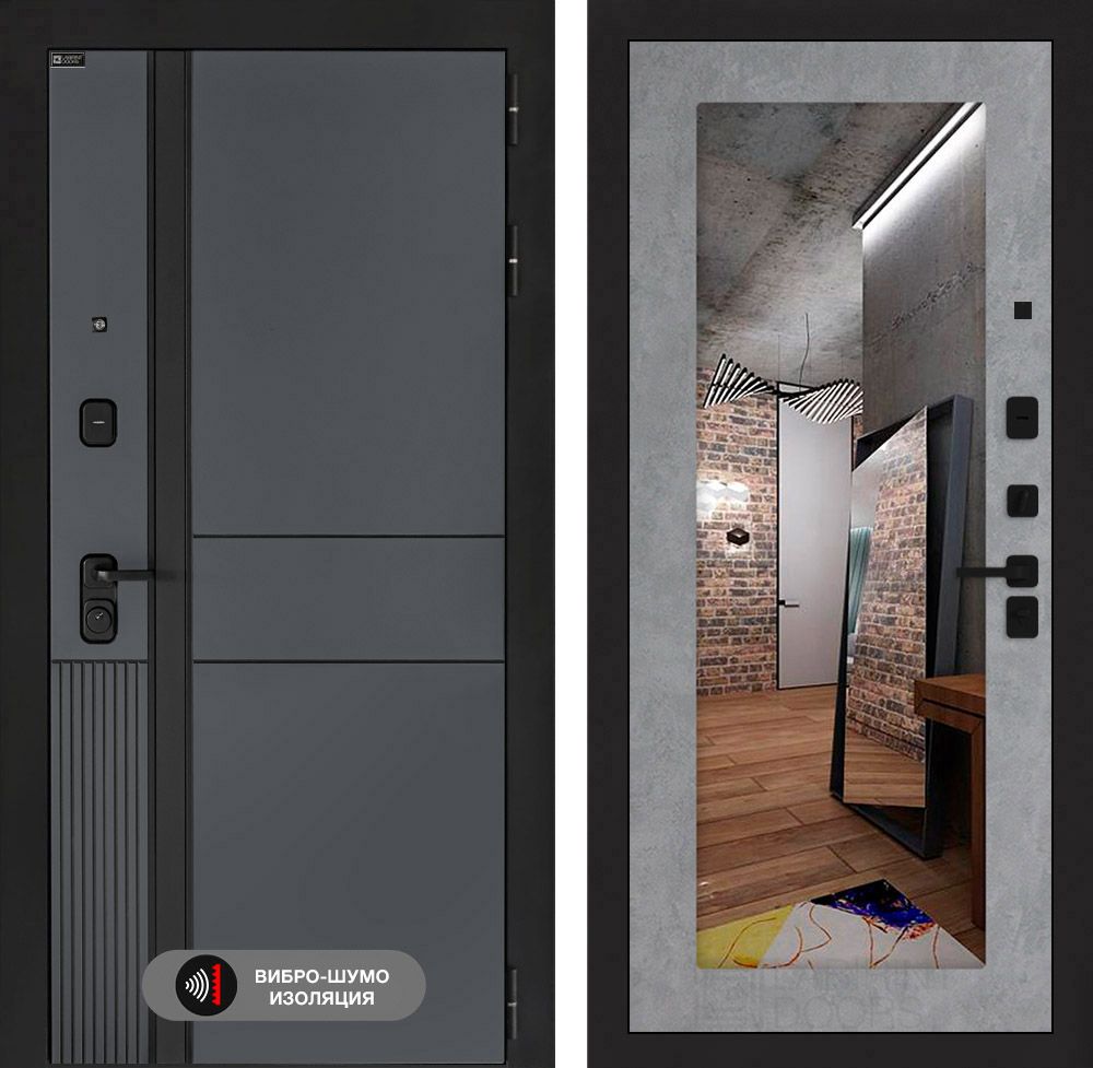 Входная дверь Лабиринт EVOLAB с Зеркалом 18 – Бетон светлый