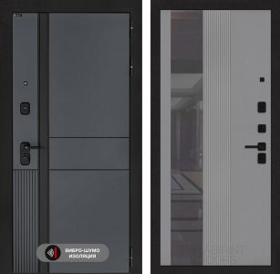 Входная дверь Лабиринт EVOLAB с Зеркалом 32 тонированным – Серый рельеф софт