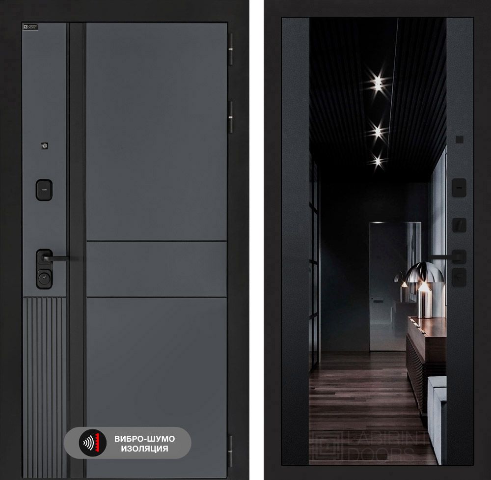 Входная дверь Лабиринт EVOLAB с зеркалом тонированным Максимум – Черный кварц
