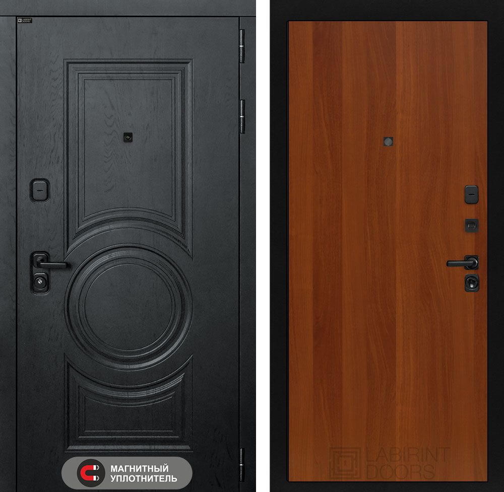 Входная дверь Лабиринт ART графит 03 - Орех бренди станет надежной защитой для вашего жилья или офиса. Изготовленная из 1,5 мм стали с утеплением базальтовой плитой, она обеспечивает высокую теплоизоляцию и звукоизоляцию. Дверь оснащена двухзамковой системой с цилиндровым замком класса безопасности и дополнительным сувальдным замком. Эстетичный дизайн с отделкой из MDF в цветах "Графит софт" и "Орех бренди" дополнит любой интерьер. Надежные петли на подшипниках и противосъемные ригели обеспечивают долговечность и безопасность использования. Доставка по Москве и России. Гарантия - 1 год на установку, 1 год на дверь, 3 года на замки.