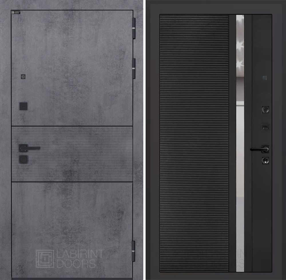 Купить входную дверь Лабиринт Инфинити 31, черный кварц, зеркальная вставка - высокая безопасность и современный стиль