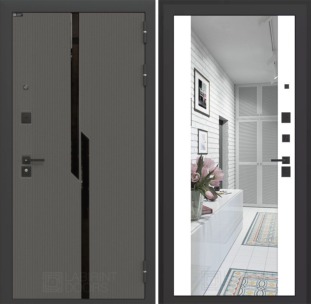 Входная дверь Лабиринт Карбон (CARBON) - Зеркало Максимум, Белый софт, MDF панель, надежность и безопасность на первом месте