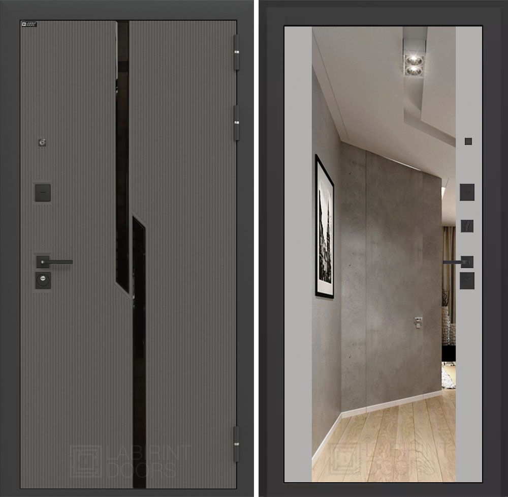 Входная дверь Лабиринт Карбон (CARBON) - Зеркало Максимум Грей софт