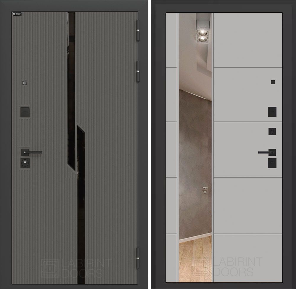 Входная дверь Лабиринт Карбон (CARBON) 19 - Грей софт с черным стеклом фацет и надежными замками