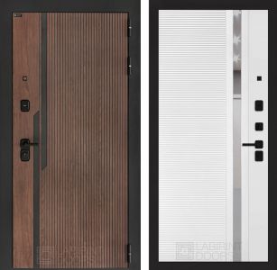 Входная дверь Лабиринт KARMINA 31 – Белый софт, зеркальная вставка с тонировкой