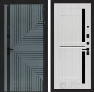 Входная дверь Лабиринт CREDOR 02 – Сандал белый, стекло черное