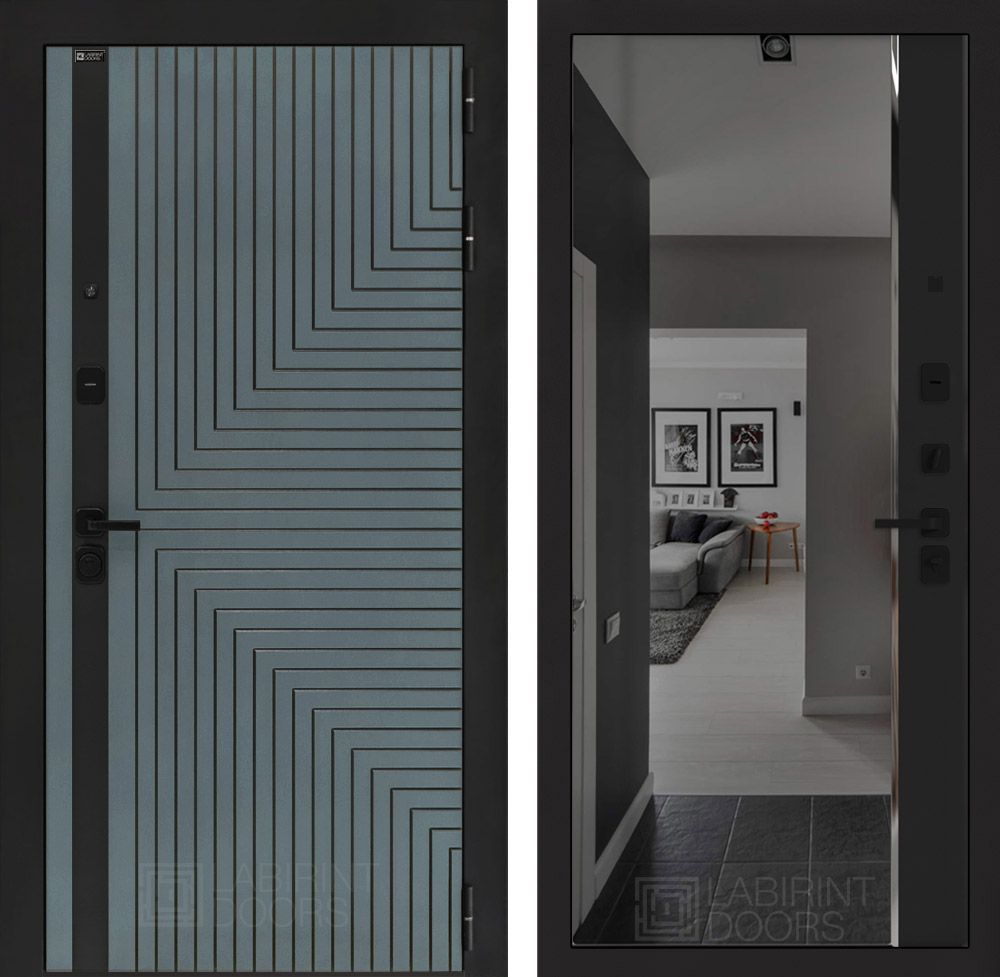 Входная дверь Лабиринт CREDOR Черный кварц с зеркалом Панорама с тонировкой
