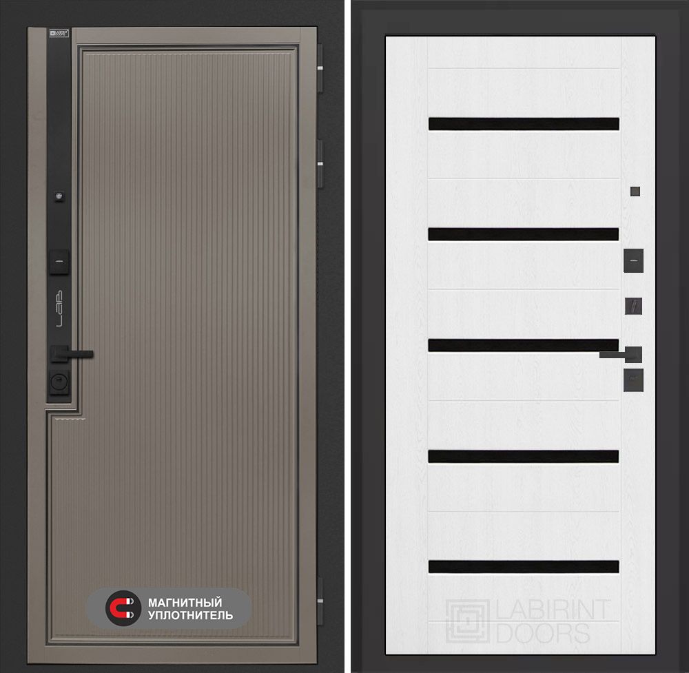 Входная дверь Лабиринт Карбон (CARBON) - Зеркало Панорама Белый софт сочетает в себе надежность и стиль. Установленная в квартиру, она имеет прочный металлический каркас толщиной 1,5 мм и утепленные ребра жесткости. Три контура уплотнения и базальтовое утепление обеспечивают отличную тепло- и звукоизоляцию. Дверь оборудована высококачественными замками KALE, а её стильная отделка с зеркалом добавит элегантности вашему интерьеру. Доставка по Москве и всем регионам РФ. Гарантия 3 года на замки, 1 год на дверь и установку.
