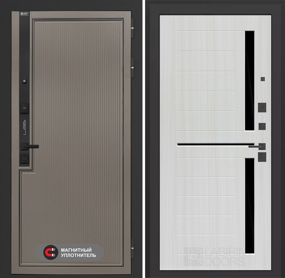 Входная дверь Лабиринт Лаб 1 Про 02 – Сандал белый, стекло черное