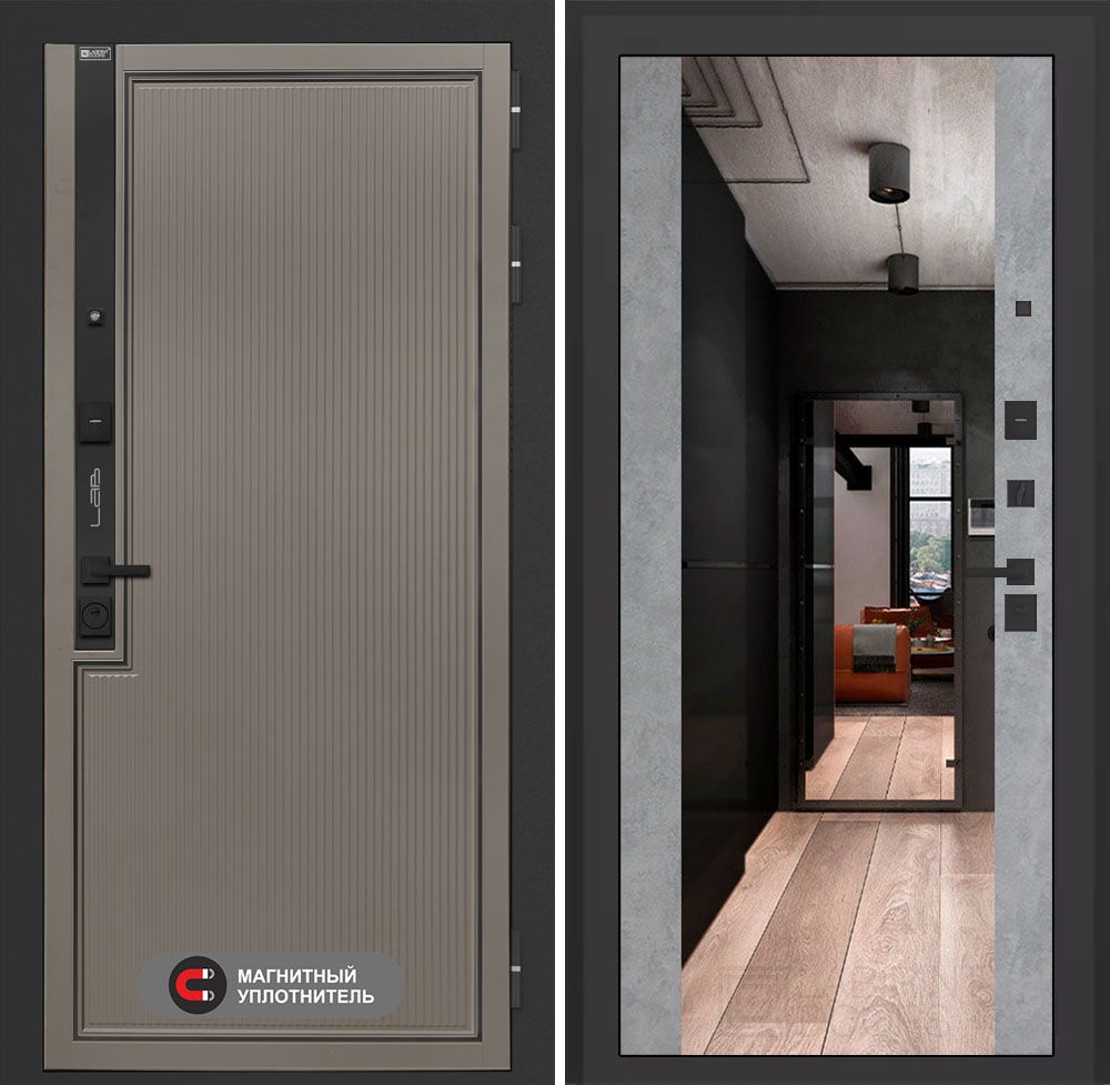 Входная дверь Лабиринт Лаб 1 Про с зеркалом Максимум – Бетон светлый