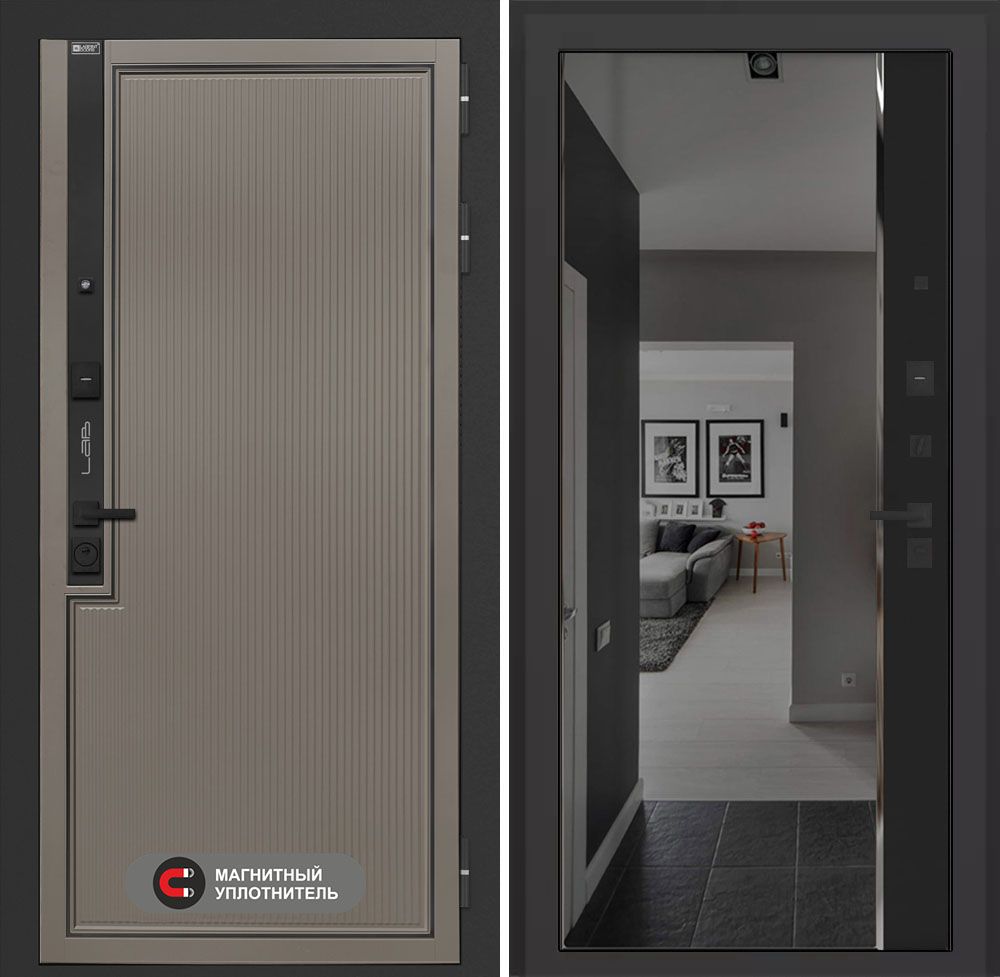 Входная дверь Лабиринт Лаб 1 Про с зеркалом (тонированное) Панорама – Черный кварц