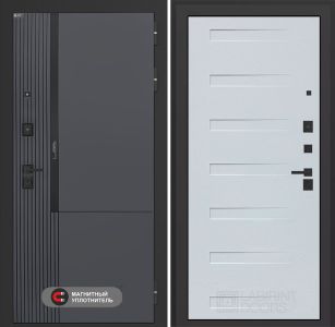 Входная дверь Лабиринт Карбон (CARBON) - Зеркало Панорама Белый софт сочетает в себе надежность и стиль. Установленная в квартиру, она имеет прочный металлический каркас толщиной 1,5 мм и утепленные ребра жесткости. Три контура уплотнения и базальтовое утепление обеспечивают отличную тепло- и звукоизоляцию. Дверь оборудована высококачественными замками KALE, а её стильная отделка с зеркалом добавит элегантности вашему интерьеру. Доставка по Москве и всем регионам РФ. Гарантия 3 года на замки, 1 год на дверь и установку.