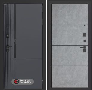 Входная дверь Лабиринт Лаб 2 Про 25 – Бетон светлый, черный молдинг