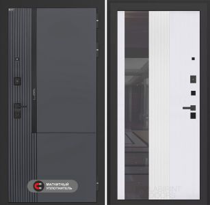 Входная дверь Лабиринт Лаб 2 Про с зеркалом 32 тонированным – Белый рельеф софт