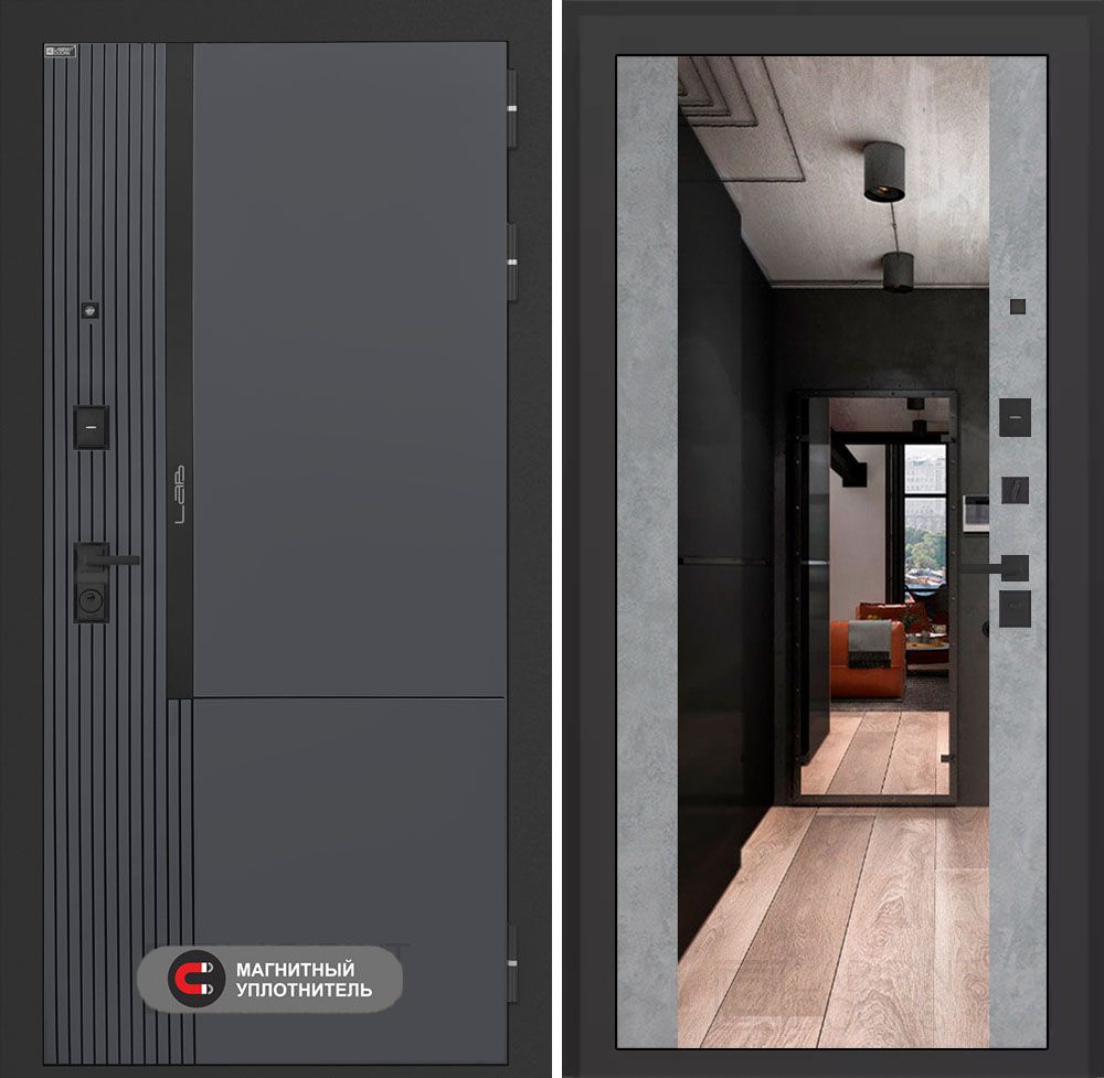 Входная дверь Лабиринт Лаб 2 Про с зеркалом Максимум – Бетон светлый