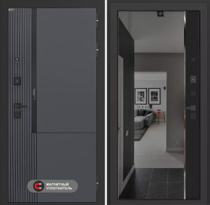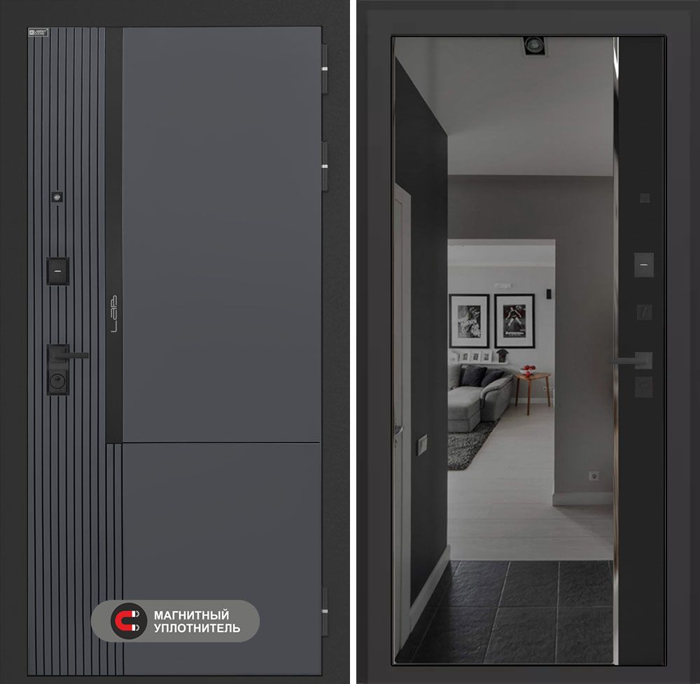 Входная дверь Лабиринт Лаб 2 Про с зеркалом (тонированное) Панорама – Черный кварц