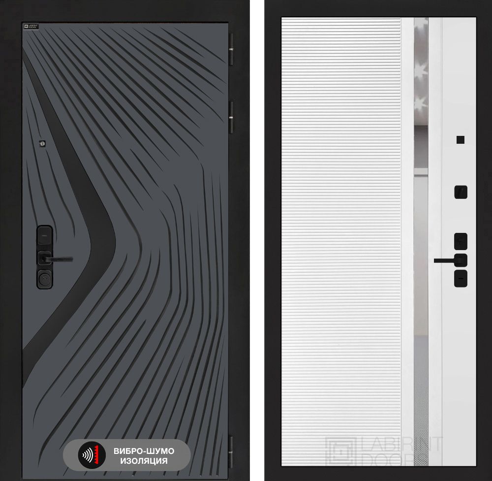 Входная дверь Лабиринт LEOLAB 31 – Белый софт, зеркальная вставка с тонировкой