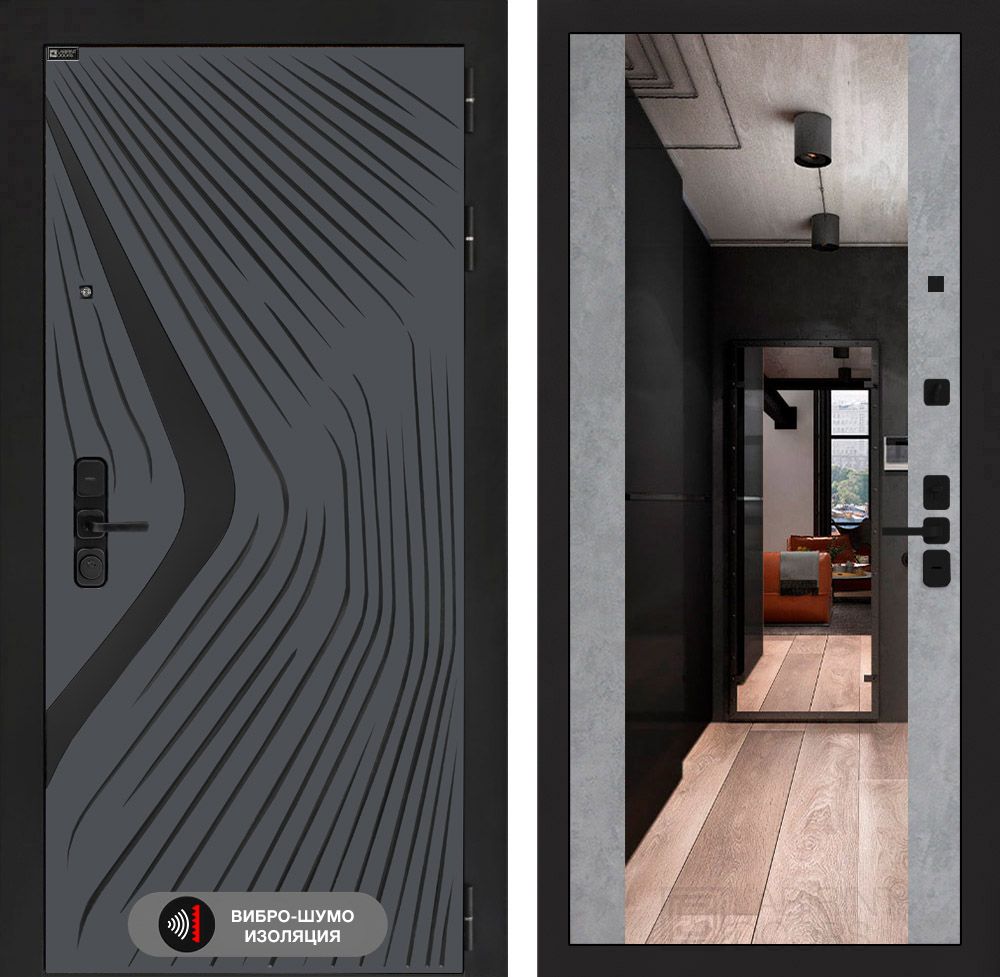 Входная дверь Лабиринт LEOLAB с Зеркалом Максимум – Бетон светлый