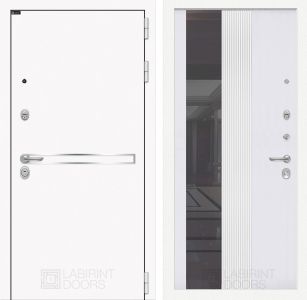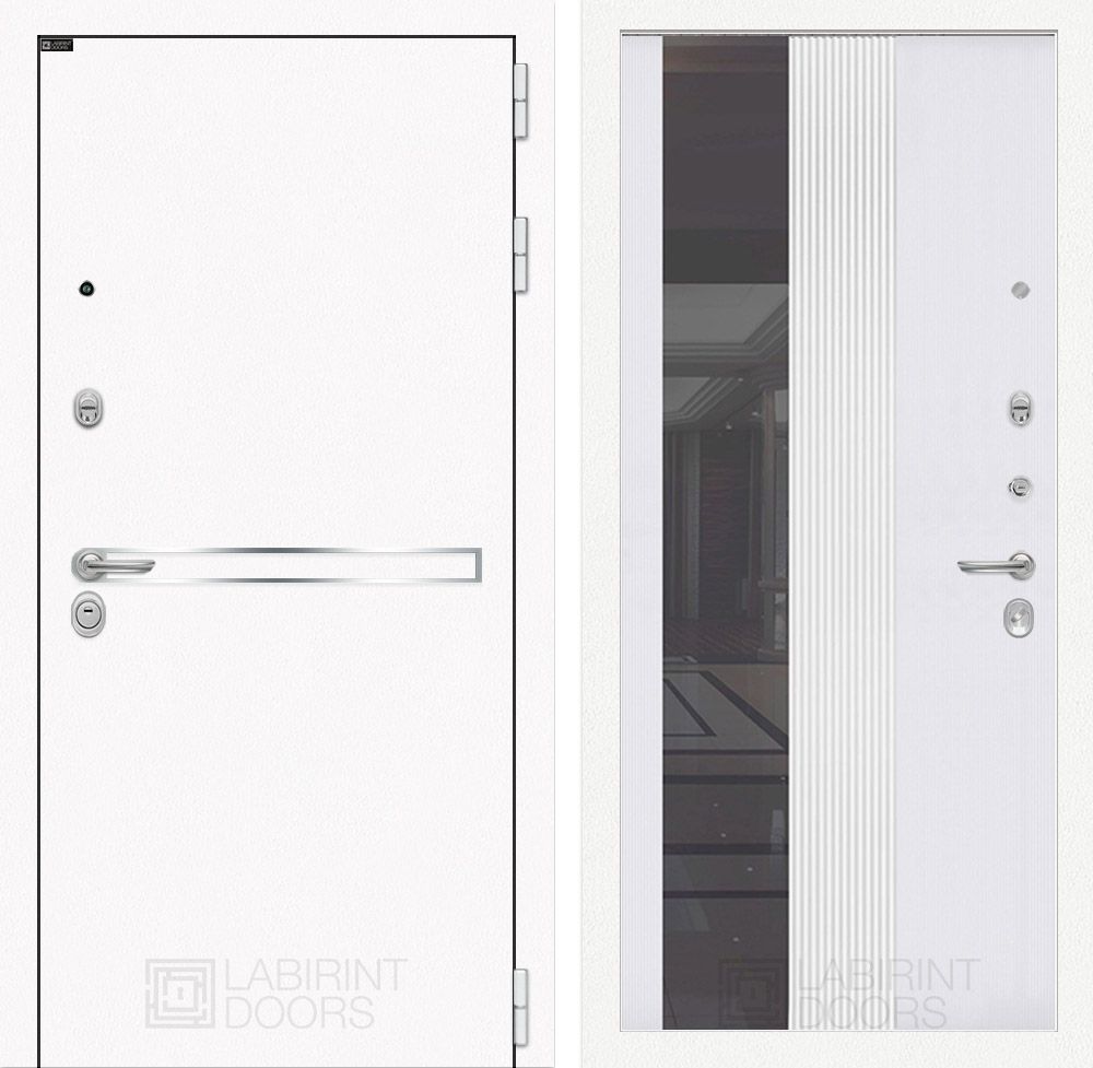 Входная дверь Лабиринт Лайн WHITE 32 - Белый софт, зеркальная вставка из нержавеющей стали, безопасность и теплоизоляция