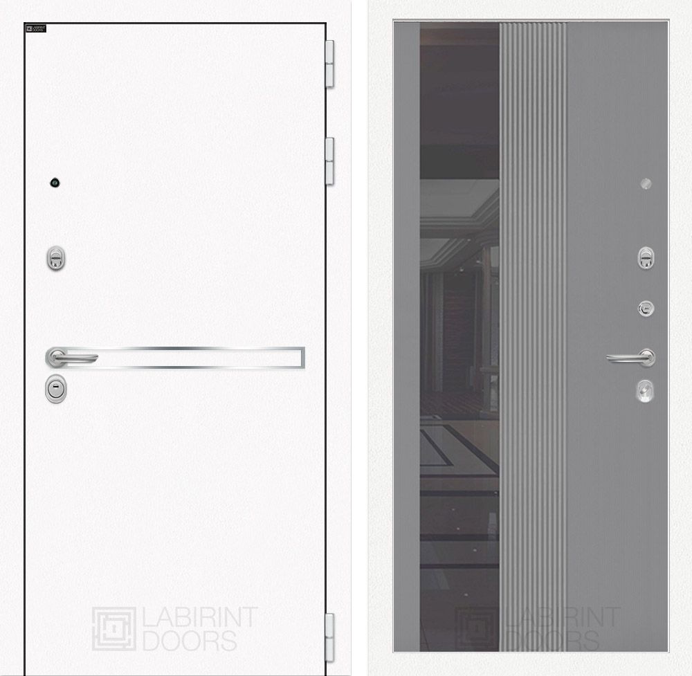 Входная дверь Лабиринт Лайн WHITE 32 - Зеркало тонированное Серый софт рельеф
